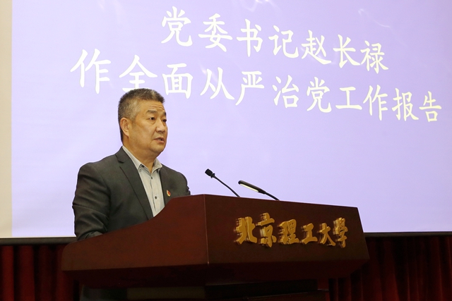 党委书记赵长禄代表学校党委作了《充分发挥全面从严治党引领保障作用,推动学校事业高质量发展》的工作报告,对2020年全面从严治党工作进行了总结,对工作中存在的问题作了深入剖析,对学校2021年全面从严治党工作作了系统部署。